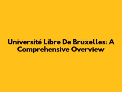 Université Libre De Bruxelles: A Comprehensive Overview
