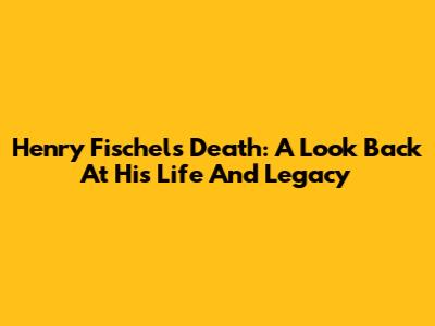 Henry Fischel's Death: A Look Back At His Life And Legacy