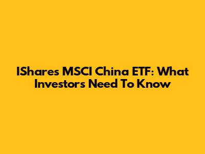 IShares MSCI China ETF: What Investors Need To Know
