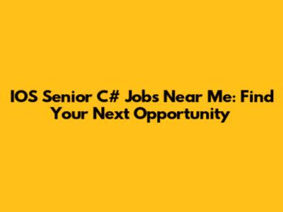 IOS Senior C# Jobs Near Me: Find Your Next Opportunity
