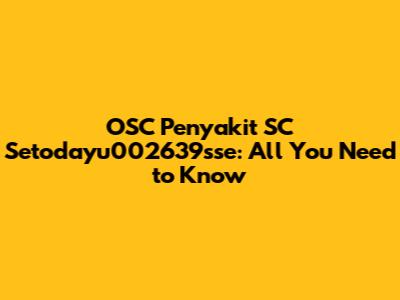 Putting it all together, OSC Penyakit SC Setodayu002639sse could potentially refer to a disease or health issue (Penyakit) related to a specific system, component, or order (OSC), identified by a unique code (Setodayu002639sse), and possibly related to a specific type or service (SC). It’s like a cryptic puzzle, isn’t it?