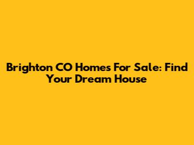 Brighton CO Homes For Sale: Find Your Dream House
