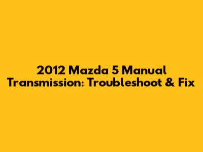 2012 Mazda 5 Manual Transmission: Troubleshoot & Fix