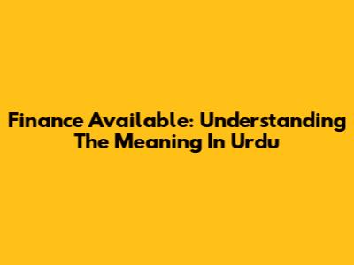 Finance Available: Understanding The Meaning In Urdu