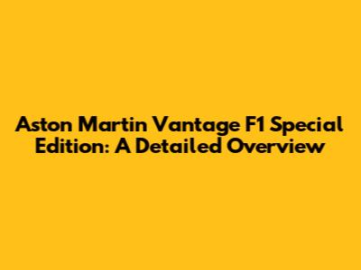 Aston Martin Vantage F1 Special Edition: A Detailed Overview