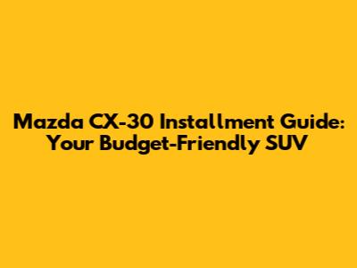 Mazda CX-30 Installment Guide: Your Budget-Friendly SUV
