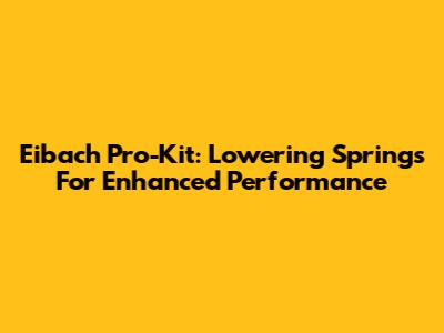 Eibach Pro-Kit: Lowering Springs For Enhanced Performance