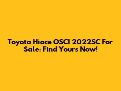 Toyota Hiace OSCI 2022SC For Sale: Find Yours Now!