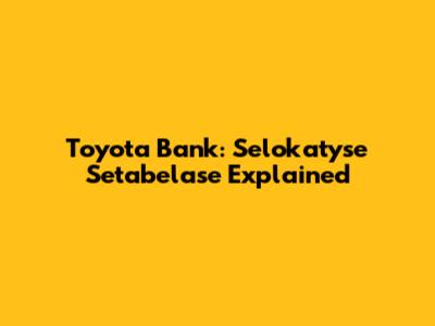 Toyota Bank: Selokatyse Setabelase Explained
