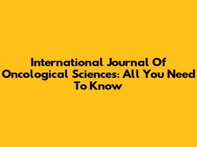 International Journal Of Oncological Sciences: All You Need To Know