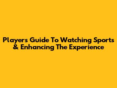 Player's Guide To Watching Sports & Enhancing The Experience