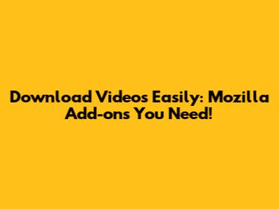 Download Videos Easily: Mozilla Add-ons You Need!