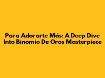 Para Adorarte Más: A Deep Dive Into Binomio De Oro's Masterpiece