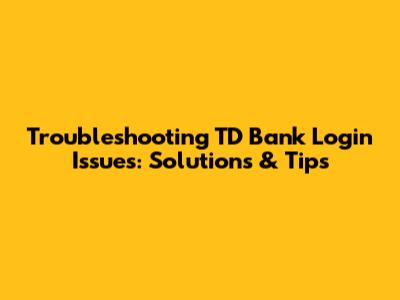 Troubleshooting TD Bank Login Issues: Solutions & Tips