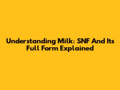 Understanding Milk: SNF And Its Full Form Explained