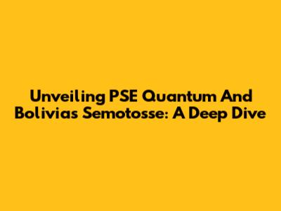 Unveiling PSE Quantum And Bolivia's Semotosse: A Deep Dive