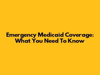 Emergency Medicaid Coverage: What You Need To Know