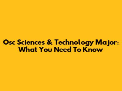 Osc Sciences & Technology Major: What You Need To Know