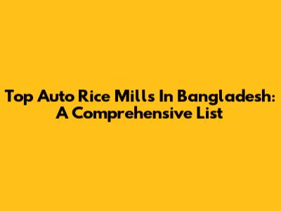 Top Auto Rice Mills In Bangladesh: A Comprehensive List