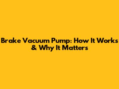 Brake Vacuum Pump: How It Works & Why It Matters