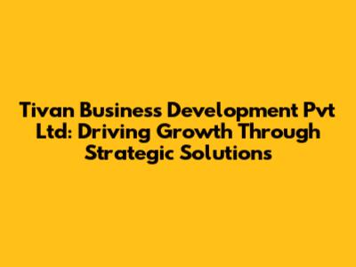 In conclusion, Tivan Business Development Pvt Ltd is more than just a business consultancy; it's a catalyst for growth, innovation, and strategic advancement. Its comprehensive suite of services, coupled with its deep industry expertise and client-centric approach, positions it as a vital partner for businesses seeking to thrive in today's competitive landscape. By fostering innovation, driving operational excellence, and providing tailored solutions, Tivan not only empowers its clients but also contributes significantly to the overall dynamism and competitiveness of the business environment. Whether you're an established enterprise or a budding startup, understanding and potentially leveraging the services of Tivan Business Development Pvt Ltd could be a game-changer for your organization's future success.