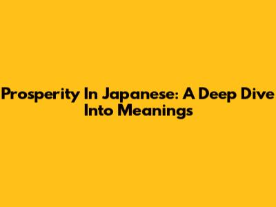Prosperity In Japanese: A Deep Dive Into Meanings