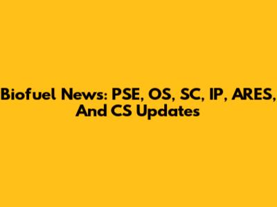 Biofuel News: PSE, OS, SC, IP, ARES, And CS Updates