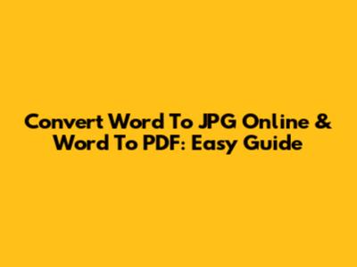 Convert Word To JPG Online & Word To PDF: Easy Guide