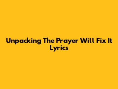 Unpacking The 'Prayer Will Fix It' Lyrics