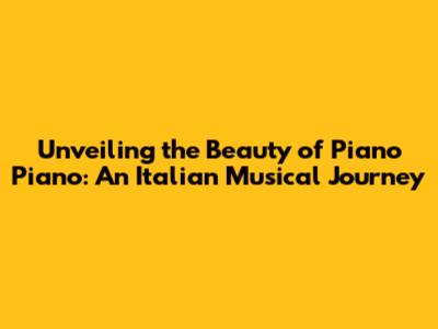The Essence of 'Piano Piano': A Deep Dive