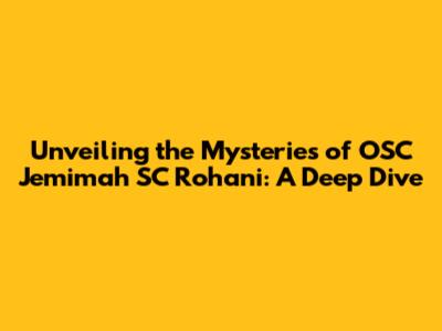 I hope this deep dive into OSC Jemimah SC Rohani has been helpful! Let me know if you have any other questions.
