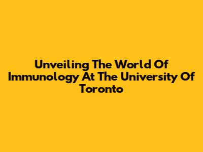 Unveiling The World Of Immunology At The University Of Toronto